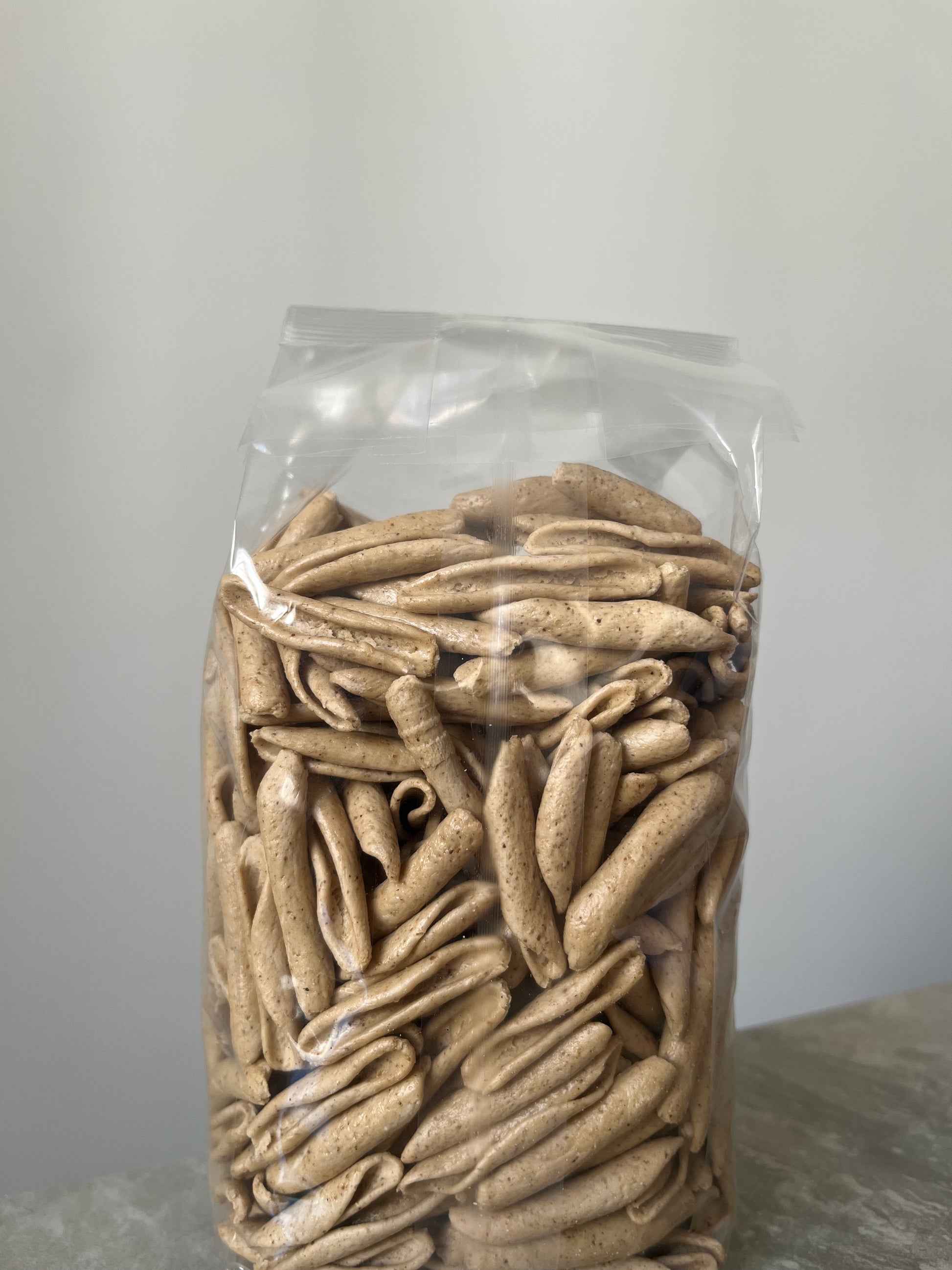 INGREDIENTI: semola di grano duro e farina di grano tostato 20%, acqua.