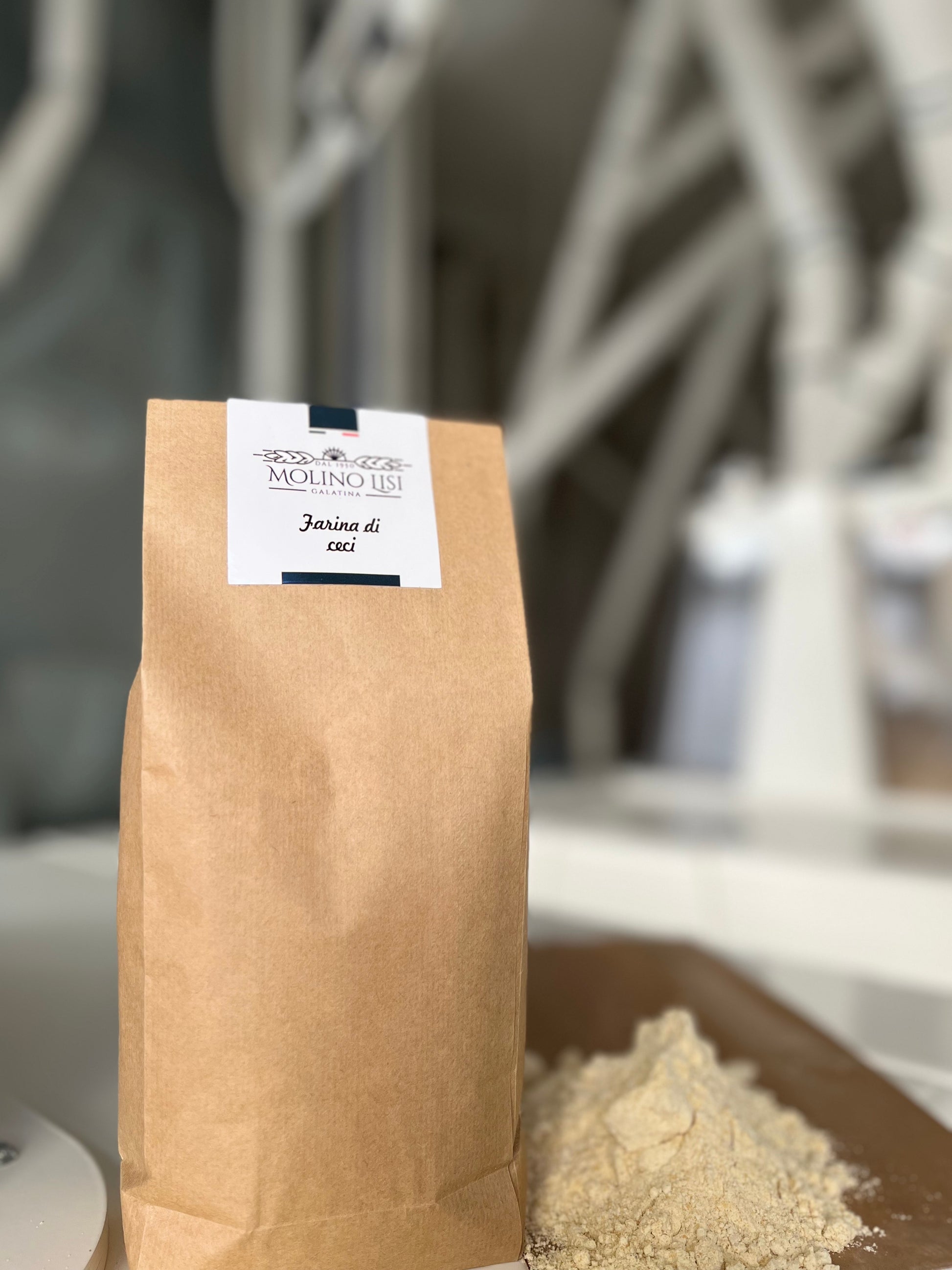 La farina 100% di ceci viene realizzata attraverso la macinazione dei ceci secchi interi e successivamente viene setacciata per avere un prodotto omogeneo. Contiene una grande quantità di proteine vegetali e viene utilizzata per la realizzazione di pane, pasta, pastella, burger, farinata e come addensante in molte ricette vegane.
