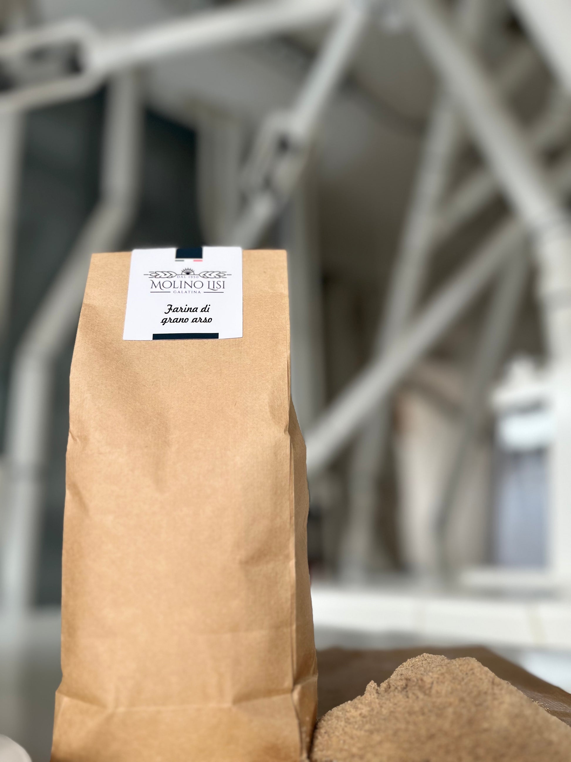 La farina di grano tostato viene ottenuta dalla tostatura dei chicchi di grano duro. Il profumo intenso ci rimanda alla tradizione dei contadini che della raccolta dei chicchi, perduti sul terreno, e tostati naturalmente dal calore del sole durante la mietitura. Si consiglia di usarla in combinazione con la farina tradizionale, circa il 30% nell'impasto totale. E' particolarmente indicata per la produzione di pane, pasta e pizza.